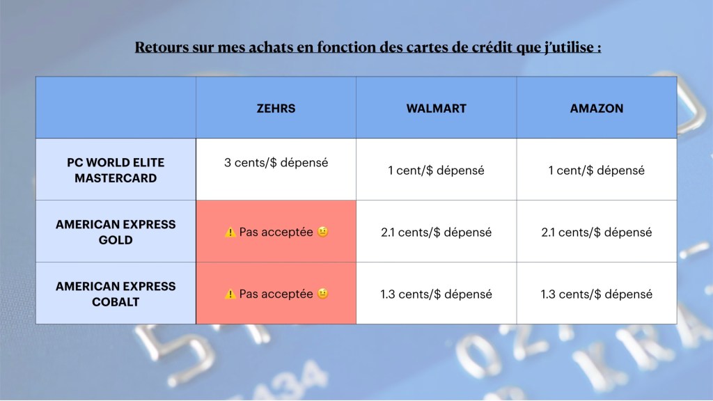La dernière piece pour maximiser mes retours, c’est d’utiliser la bonne carte de credit !
