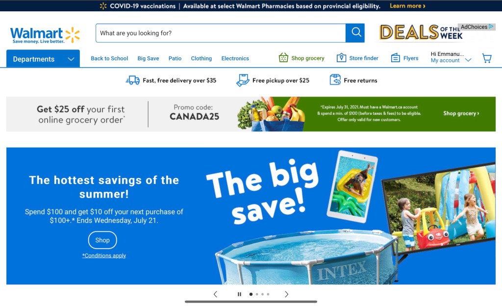 – Walmart : en voilà un auquel on ne pense pas souvent – mais qu’il vaut la peine de considérer également! Walmart a musclé son site internet et a clairement la volonté de concurrencer Amazon dans ce domaine. De plus, avec des magasins de plus en plus grands ayant pignon sur rue partout au Canada, vous n’en êtes jamais bien loin.